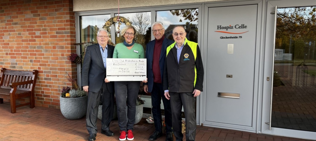 Seinen 90ten Geburtstag nutzte Reinhold Brunotte deshalb, um Spenden für die Hospizarbeit in Celle zu bitten. Zur Übergabe der 2.000 Euro kamen Lions-Club-Mitglieder Jochen-Konrad Fromme und Wolfgang Graaff mit in die Glockenheide und erwähnten das Leitmotiv der Lions: „We serve“ beziehungsweise „Wir dienen“. Wie schön, dass dieser Grundgedanke sich in diesem Fall mit einem sehr persönlichen Interesse verknüpfen ließ! Die interessierten Fragen unserer Hildesheimer Besucher beantwortete Hospizleiterin Inga Janßen gern und freute sich sehr über 2.000 Euro für die Hospizarbeit.
