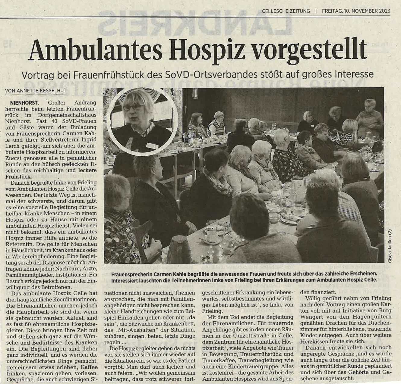 Cellesche Zeitung v. 10.11.2023: Ambulantes Hospiz vorgestellt