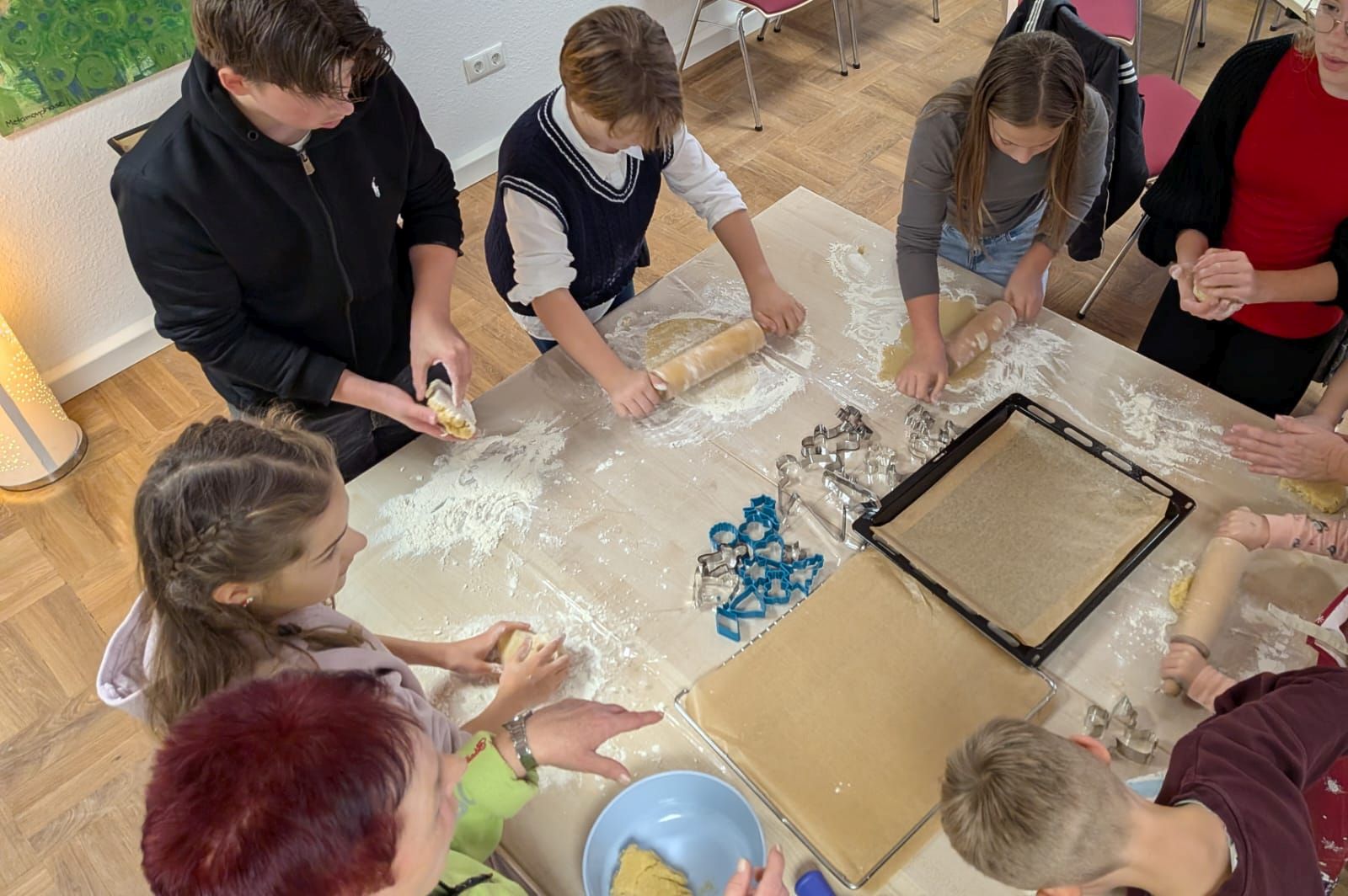 Alle Jahre wieder … backen unsere Kinder aus der Kindertrauergruppe Erinnerungskekse. Diesmal trafen sich sieben Kinder mit unseren ehrenamtlich Mitarbeitenden Heidi Willuhn, Cordula Siebert und Günter Klose zum Ausstechen, Backen und Dekorieren. Alles, was anschließend nicht gleich verzehrt wurde, nahmen die Kinder mit nach Hause – eine leckere Erinnerung an einen schönen Nachmittag!