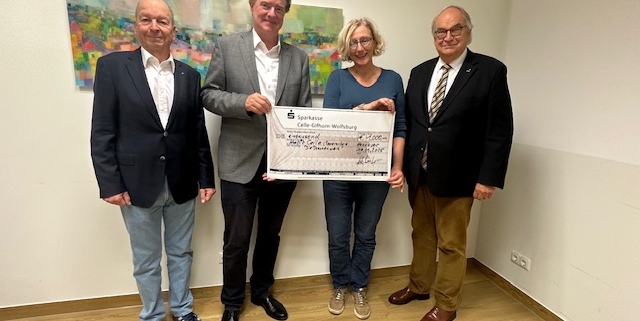 Anlässlich seines Geburtstages sammelte ein Mitglied des Lionsclubs Hannover Witzeaue Geld: für einen guten Zweck, nämlich für die Kinderhospizarbeit. Club-Präsident Prof. Dr. Heinrich Lanfermann konnte so kürzlich 1.000 Euro übergeben, gemeinsam mit Schatzmeister Dr. Egbert Hellwig (links) und Dr. Udo Hörstmann (rechts im Bild).