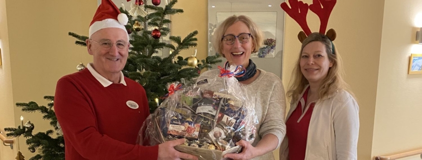 Schon einige Jahre ist die Apotheke am Weißen Wall für uns zuständig und stattet uns aus mit allen Medikamenten, die wir im Hospizalltag benötigen. Nun kamen Inhaber Dr. Stefan Siewers und seine Mitarbeiterin Constanze Nieber bei uns vorbei – mit einem wunderbaren Arrangement süßer Leckerbissen. Herzlichen Dank dafür und auch für die zuverlässige und herrlich unkomplizierte Zusammenarbeit! Fröhliche Weihnachten an das gesamte Team der Apotheke am Weißen Wall!