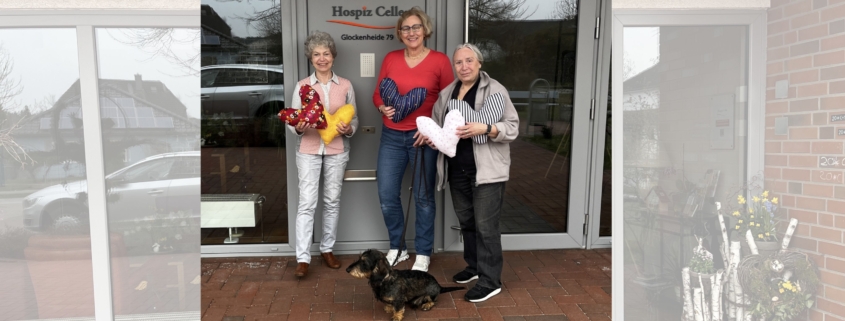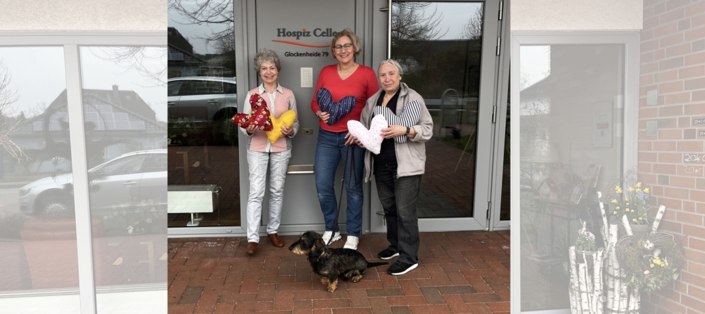 Roswitha Alvermann (rechts), Vorsitzende vom SoVD Hustedt, und Schriftführerin Marion Gläser übergaben Hospizleiterin Inga Janßen kürzlich neue selbst genähte Herzkissen für unsere Gäste: ein freundlicher Willkommensgruß – nicht nur schön, sondern auch weich und bequem. Auch unsere ambulanten Trauerbegleiter haben Herzkissen dabei für die Trauernden, mit denen sie sich treffen.