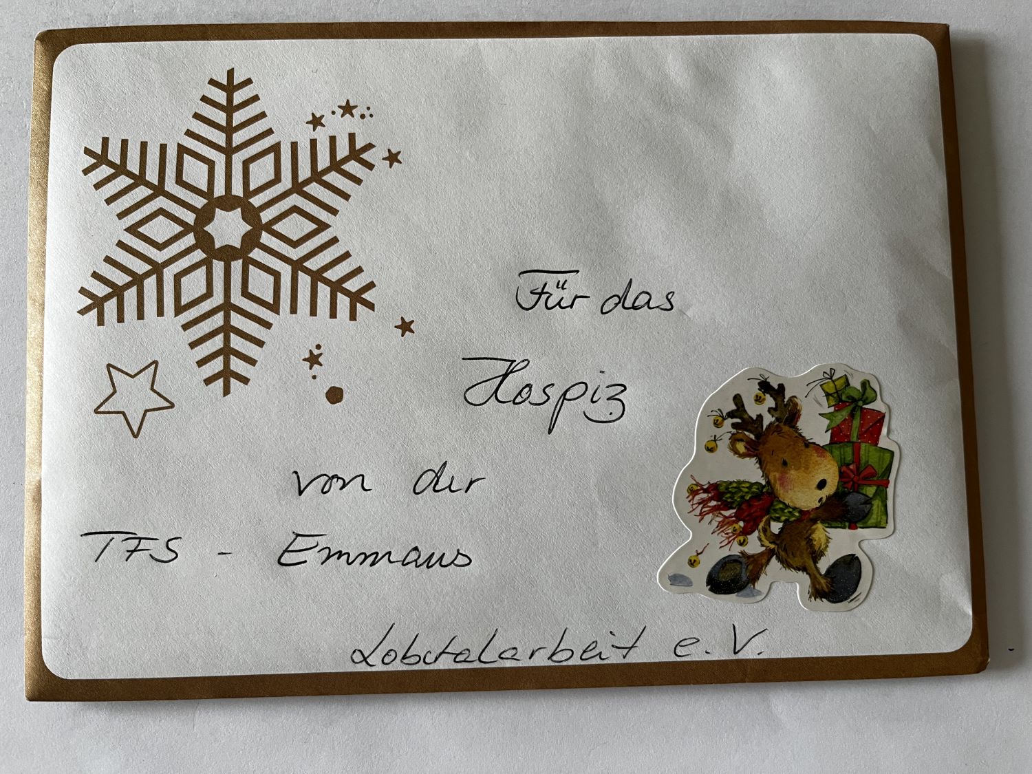 Die Tagesförderstätte der Lobetalarbeit ließ sich etwas Besonderes für uns einfallen: Zum Adventsmarkt auf dem Abenteuerspielplatz veranstalteten sie einen Spendenflohmarkt zu unseren Gunsten. Zur Übergabe des Erlöses von 250 Euro – passenderweise unter unserem Weihnachtsbaum – kamen Susanne Kok sowie Claudia und Michael zu uns. Vielen Dank für die tolle Idee!
