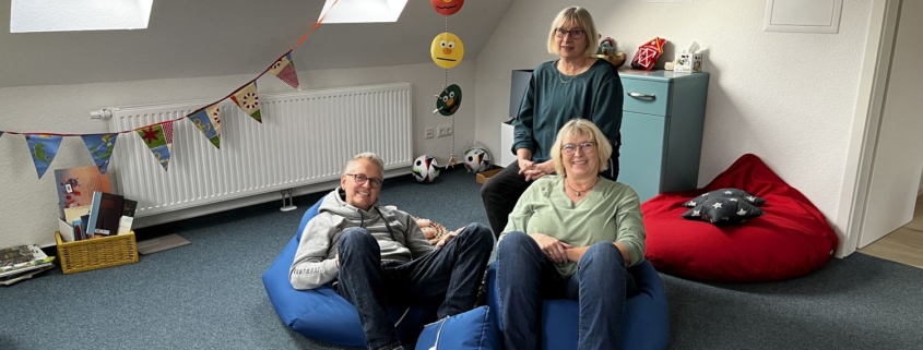 Die Treffen laufen immer ähnlich ab: Der Gastgeber spendiert die Getränke; das Essen zahlt jeder selbst. Außerdem lädt Stephan März ein, für einen guten Zweck zu spenden. Das Geld und seine Kontakte nutzt Stephan März, unsere Hospizarbeit ganz praktisch zu unterstützen: Letzte Woche brachte er Holz für den Kamin ins Hospizhaus in der Glockenheide; diese Woche zwei Sitzsäcke für unser Drachennest in der Guizettistraße. Koordinatorin Imke von Frieling und Cordula Siebert vom Ehrenamt probierten letztere bei der Übergabe gleich aus – und fanden: „Sehr gemütlich!“