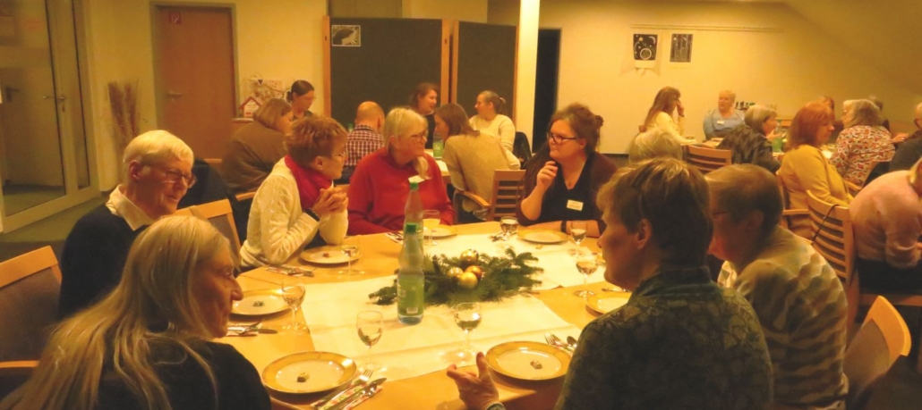 Vergangenen Freitag wurde es trubelig im Hospizhaus. Sozialarbeiterin Birthe Scott und Koordinatorin Annett Rindfleisch hatten die ehrenamtlich Mitarbeitenden eingeladen. Bei leckerem Essen in vorweihnachtlicher Atmosphäre wollten wir uns bedanken bei allen, die unsere Arbeit überhaupt erst möglich machen: Ihr begleitet Schwerstkranke und Trauernde, seid mit unserem Spendenlädchen in der Stadt präsent und informiert über unsere Arbeit, übernehmt Telefondienste (insbesondere an Wochenenden und Feiertagen) … und und und – seid oft die ersten Ansprechpartner für Menschen in äußerst schwierigen Situationen.